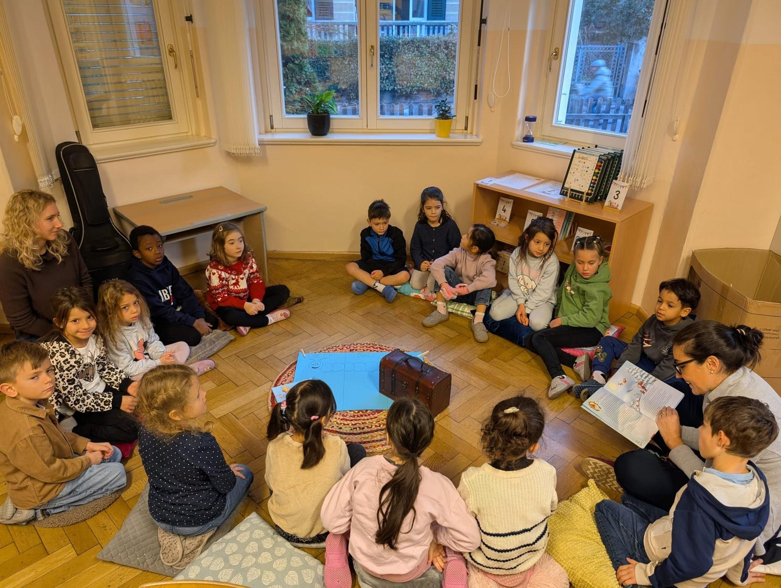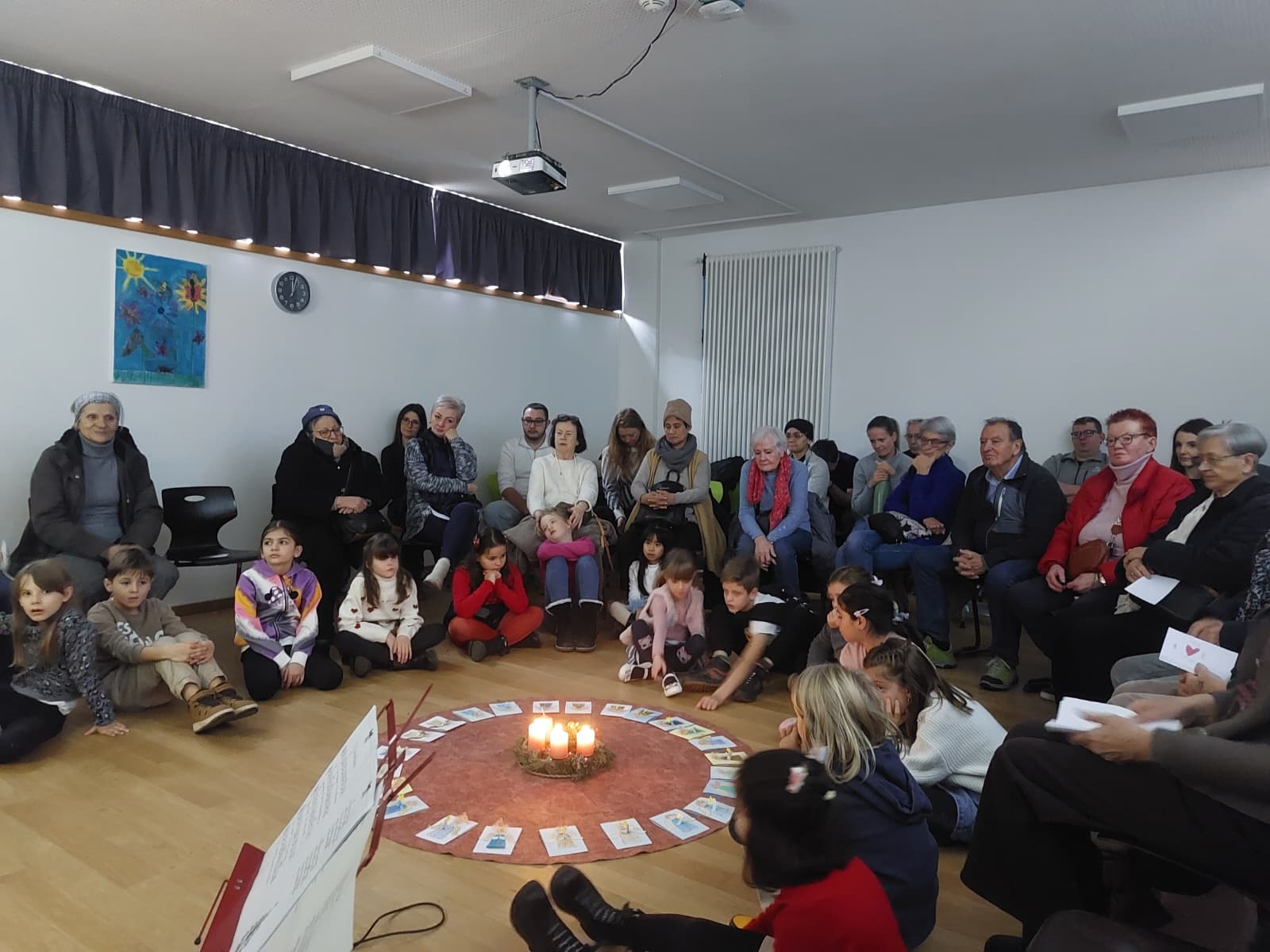 In der 5B wurden um den Adventskranz herum Geschichten vorgelesen. Manchmal kamen auch Eltern zum Vorlesen.
