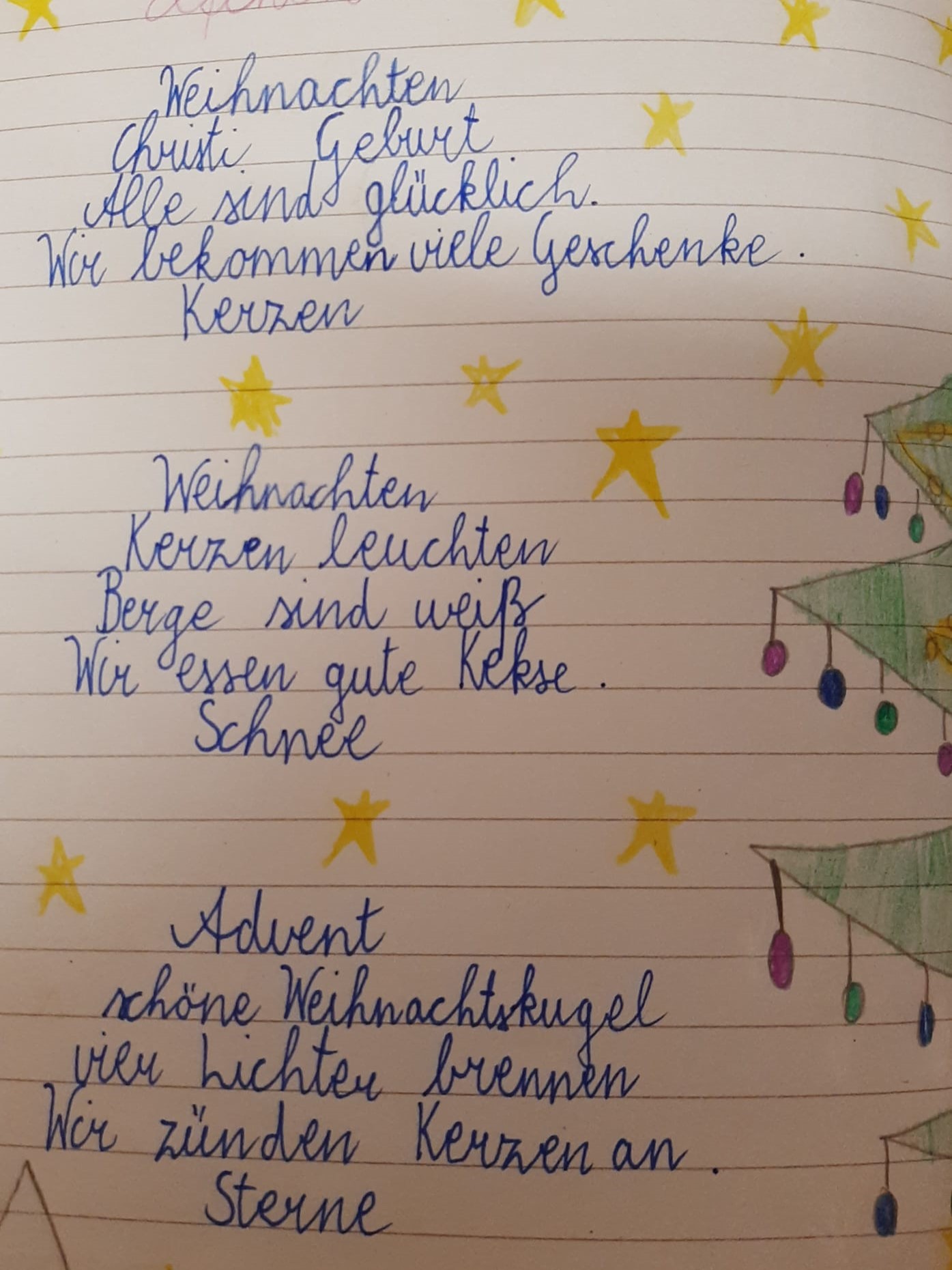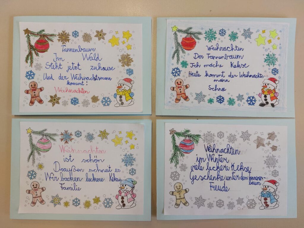 In der 3A wurden Weihnachtskarten mit selbstgeschriebenen Elfchen verziert.
