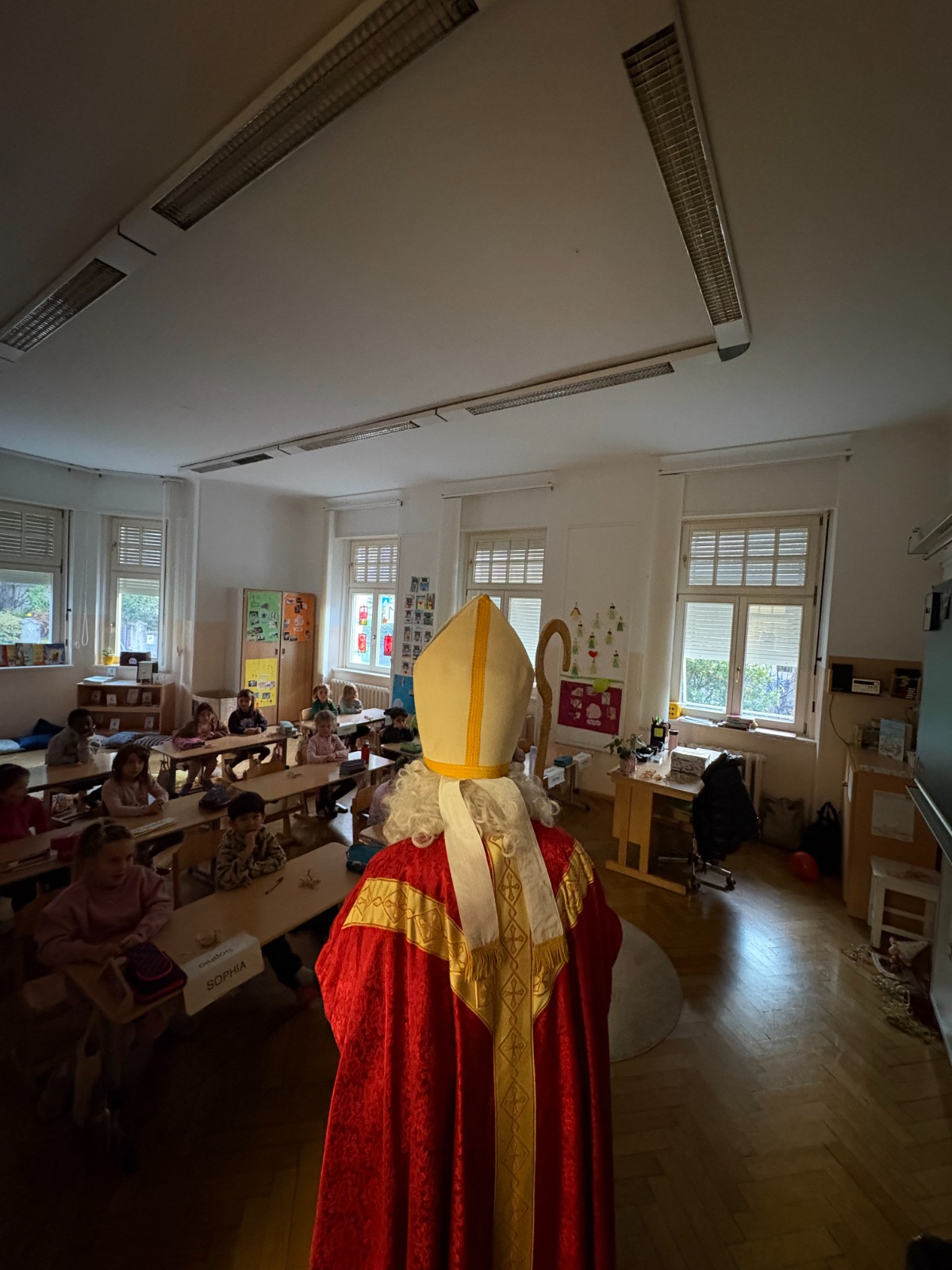 Der Nikolaus überraschte die Kinder der 1. und 2. Klassen mit seinem Besuch.