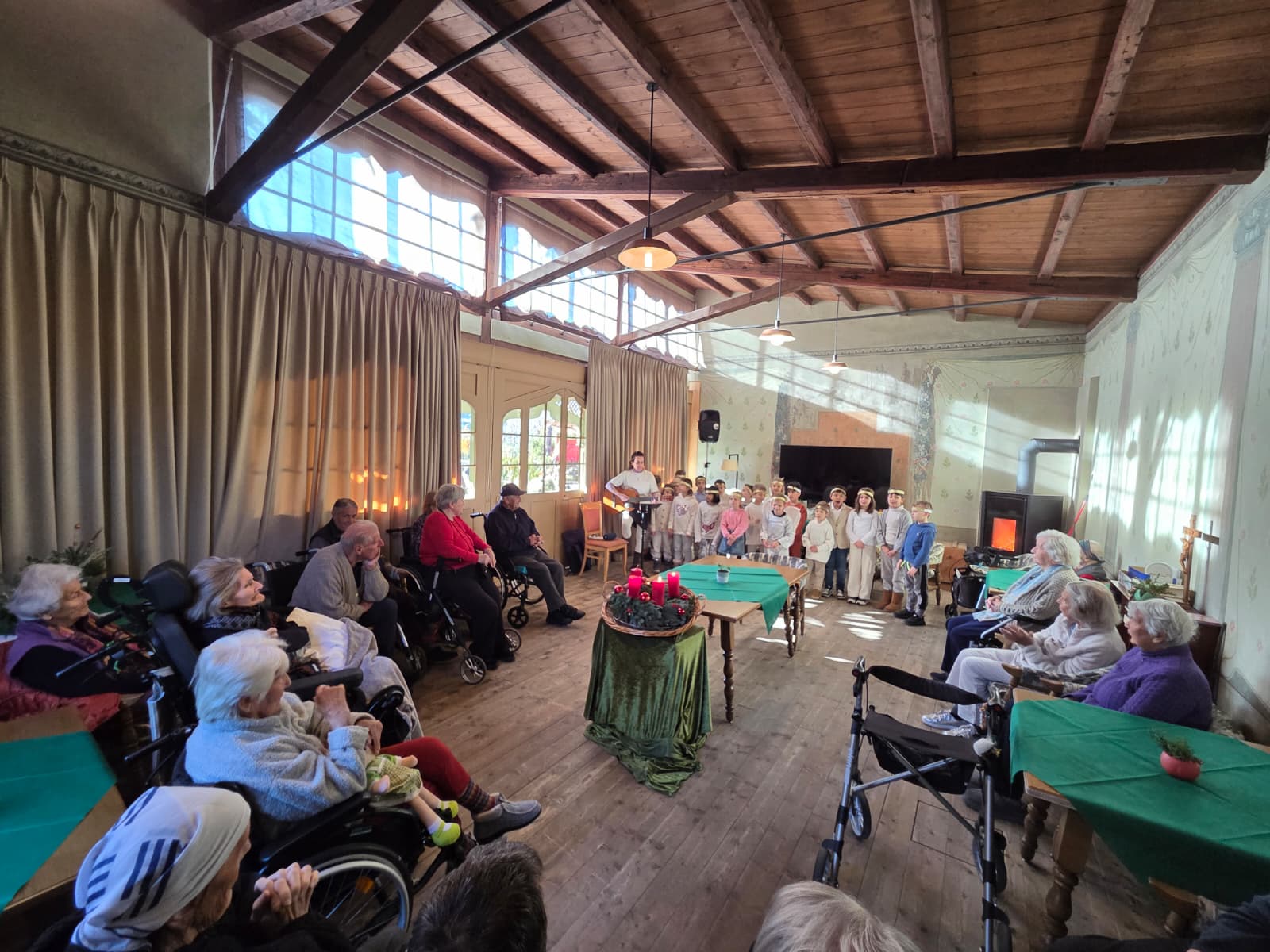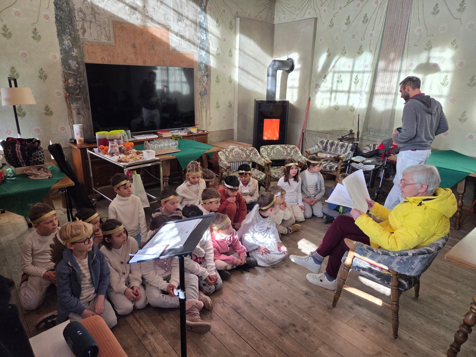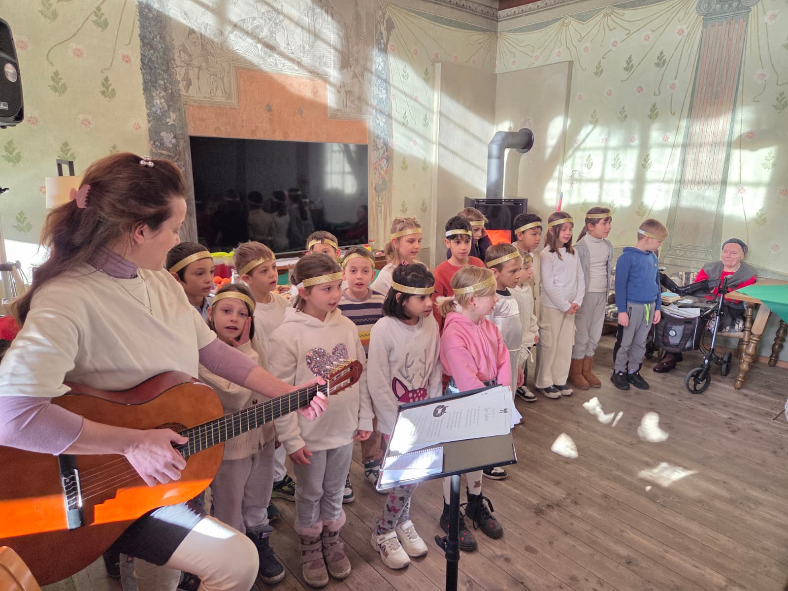 Die gemeinsame Abschlussfeier fand am letzten Tag vor den Weihnachtsferien in der Turnhalle statt. Auch eine Harfe begleitete unsere Weihnachtslieder und sorgte für eine besonders anmutige Stimmung.