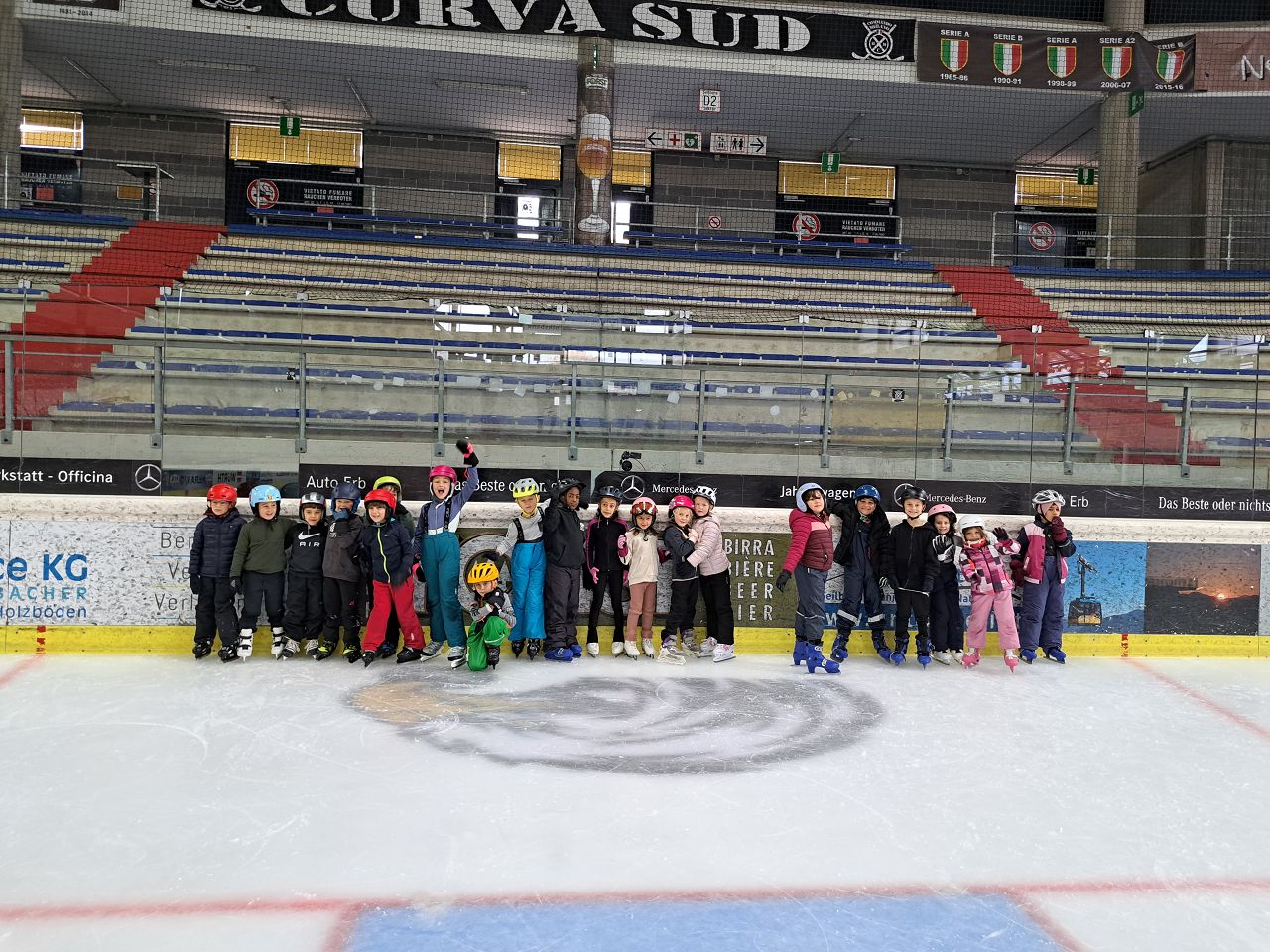 Von Oktober bis Dezember waren die Klassen 2a und 2b jede Woche in der Meranarena auf dem Eis unterwegs. Dort bekamen die Kinder ein tolles, spielerisches Eislauftraining von zwei Hockeyspielern, die mit viel Geduld und guter Laune dabei waren.