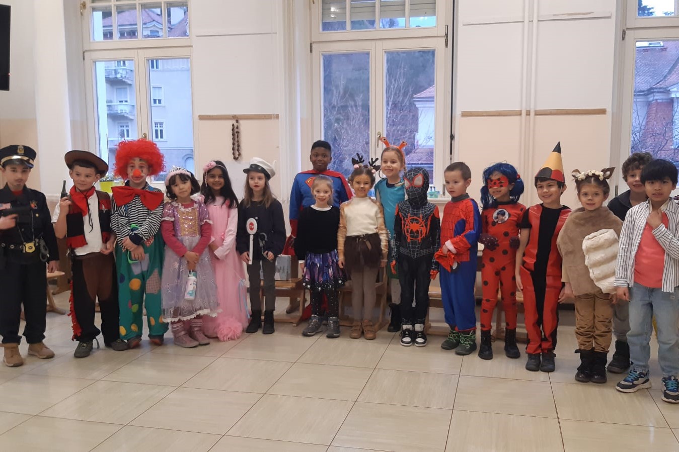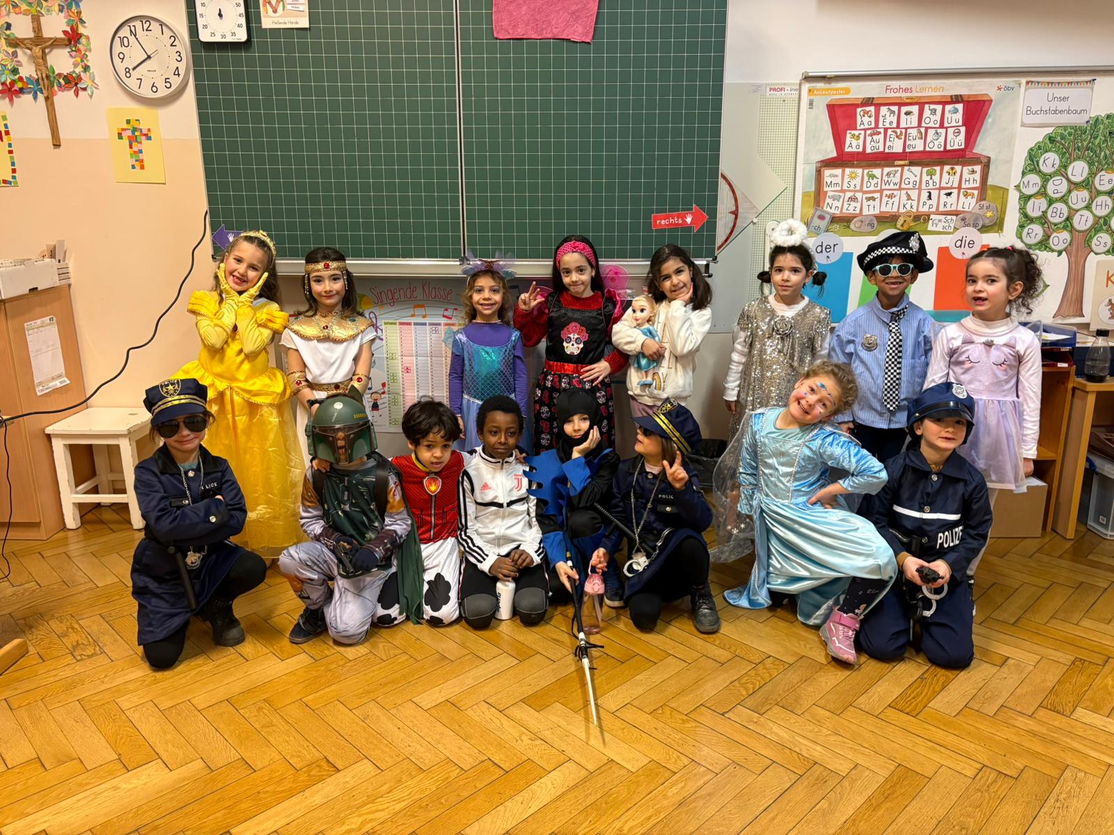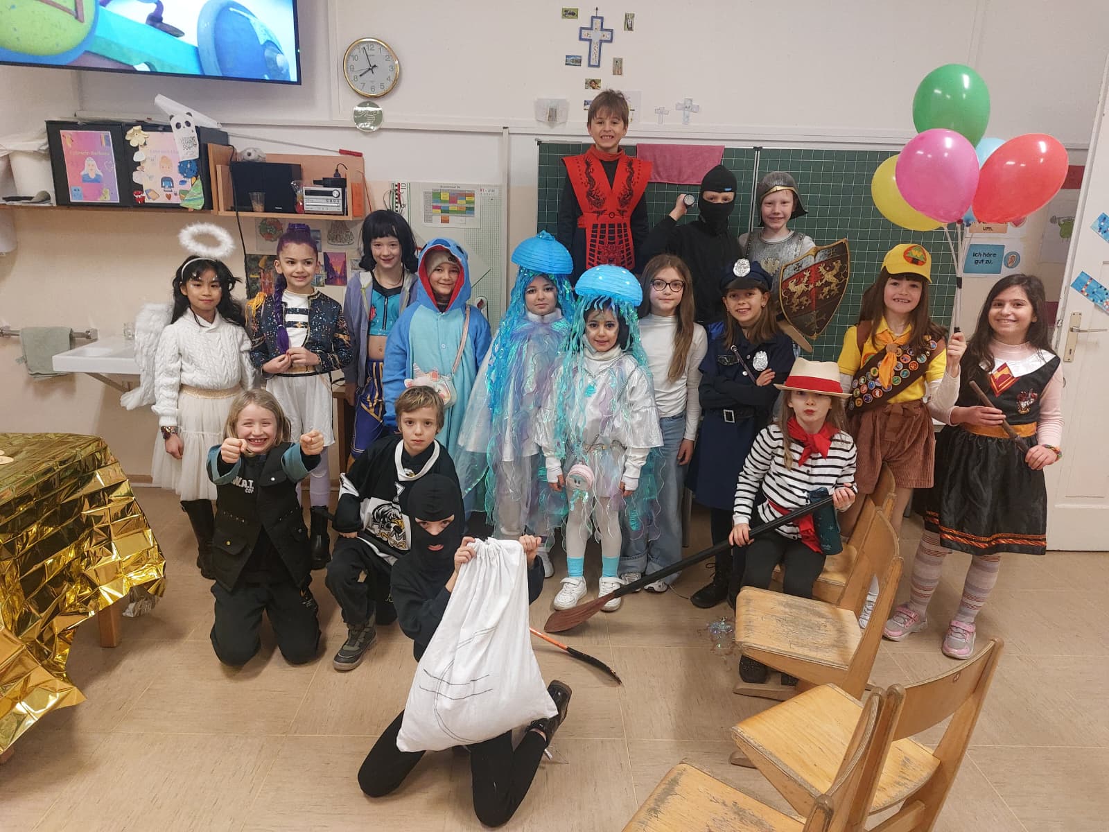 Nach dieser Darbietung gingen alle Klassen in die Schule und verbrachten die Zeit bis zur Pause mit verschiedenen Stationen. Es wurden getanzt, gespielt, musiziert und Faschingskrapfen durften natürlich auch nicht fehlen.